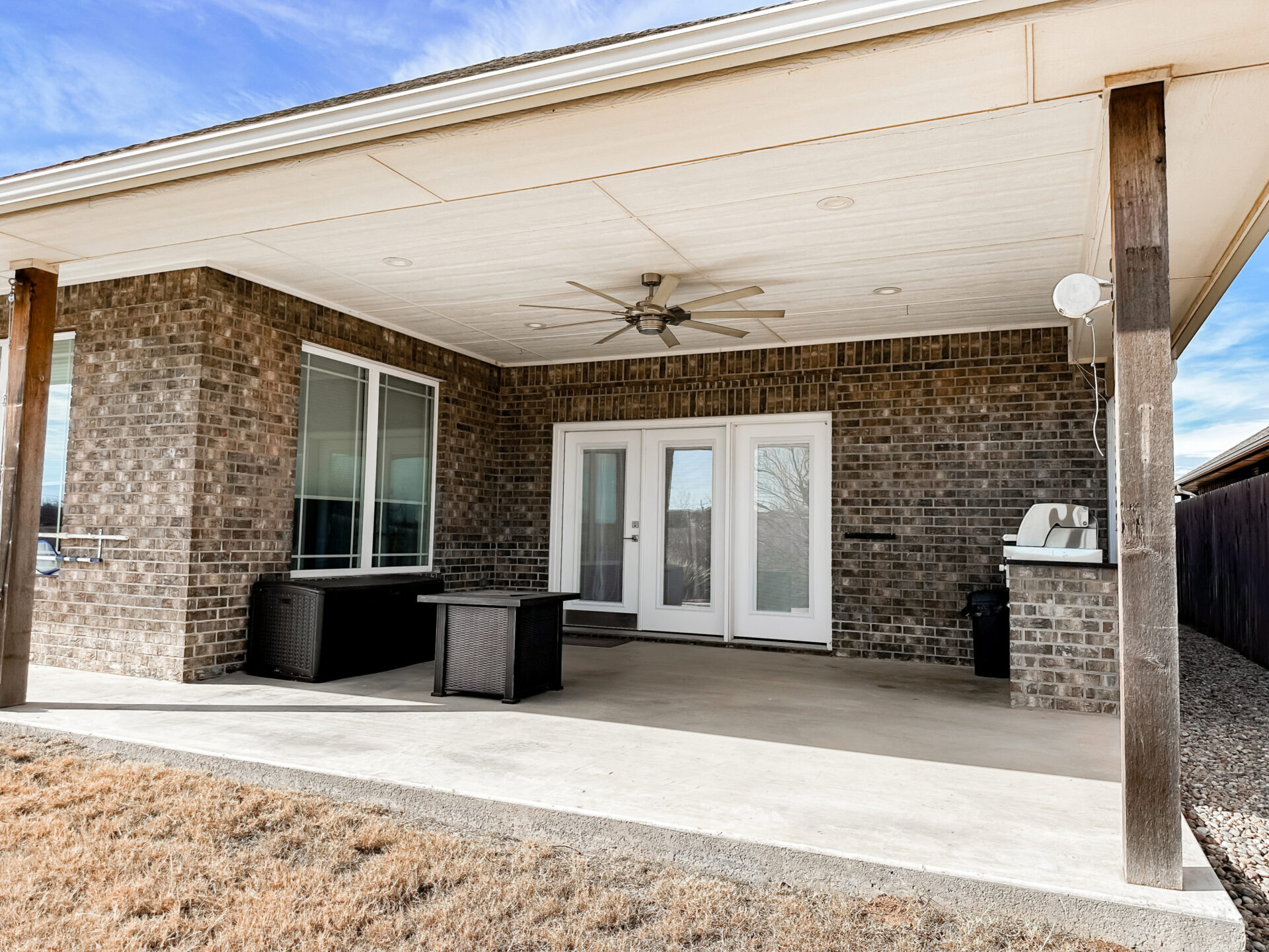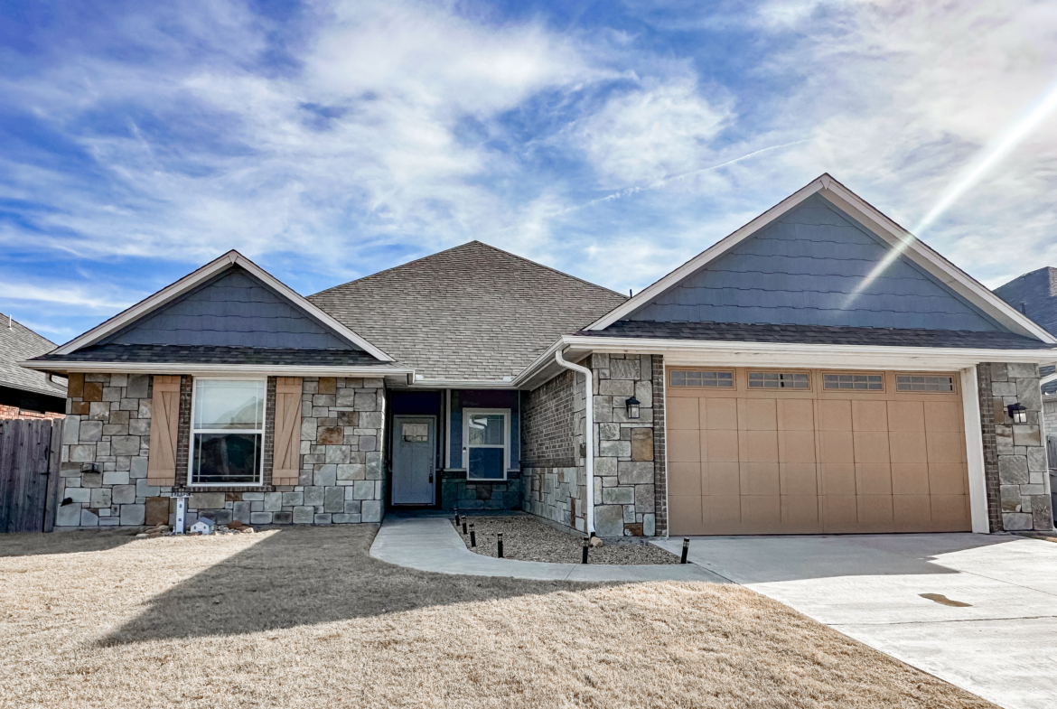 Beautiful custom-built home with water views located in the gated Scissortail Addition! Don’t miss your chance to own this backyard oasis, complete with custom amenities. This home features 3 bedrooms, 2 full baths, and additional office space. The open great room boasts soaring ceilings, a ventless fireplace, and a surround sound system. The gourmet kitchen is designed with a welcoming island and breakfast bar area, stainless steel appliances—including a gas cooktop and built-in oven/microwave—and extensive custom cabinetry.